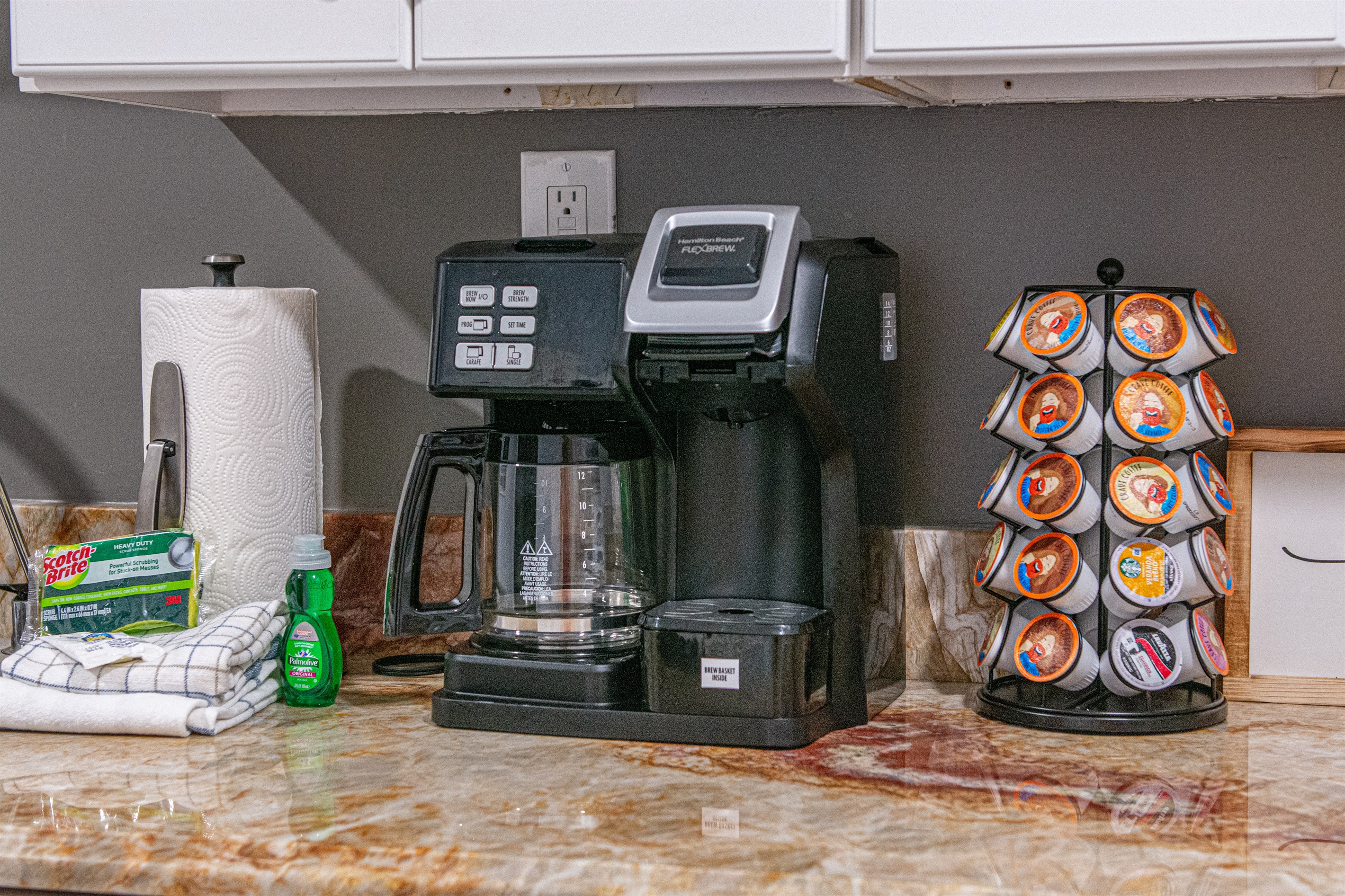 Enjoy prepping a meal together in our chef’s kitchen with everything you can think of. Don’t want to go out to get a morning coffee? Our coffee bar provides all you need for a fresh cup of coffee. The dining table is large enough to fit 8 people to enjoy a meal.